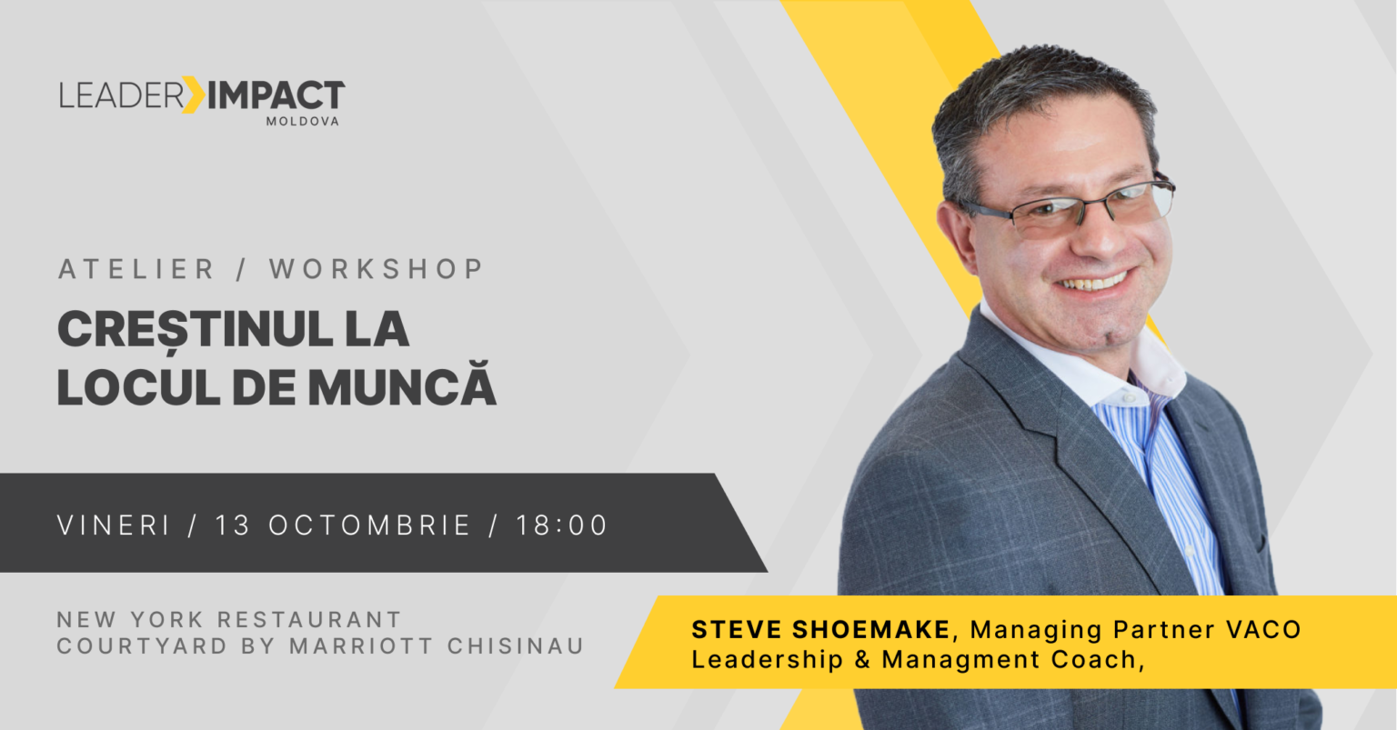 Dacă ești interesat de cariera și creșterea ta la locul de muncă, te invităm la atelierul: „Creștinul la locul de muncă” organizat de Leader Impact. Pe agenda de discuții vor fi abordate: etica în afaceri, relațiile cu colegii de muncă, comportamentul profesional și creștin în locul în care lucrăm.