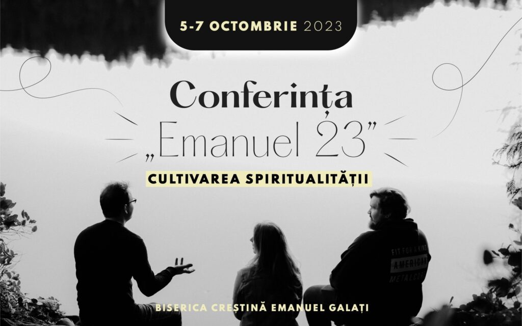 Amintim că Conferința Emanuel 2023 se desfășoară în perioada 5-7 octombrie. Este găzduită de Biserica „Emanuel” din Galați și se află la a doua ediție. Conferința Emanuel 23 are ca scop dezvoltarea dependenței noastre în slujire de Dumnezeu, cultivând o inimă sensibilă la ce spune Duhul, bisericii astăzi. Prin sesiunile plenare și multitudinea de ateliere la care vom participa, vom fi invitați să înțelegem dependența de Duhul, să practicăm slujirea prin Duhul și să cultivăm o viață de slujire evlavioasă, având perspectiva biblică asupra conducerii creative a Bisericii secolului al XXI-lea.