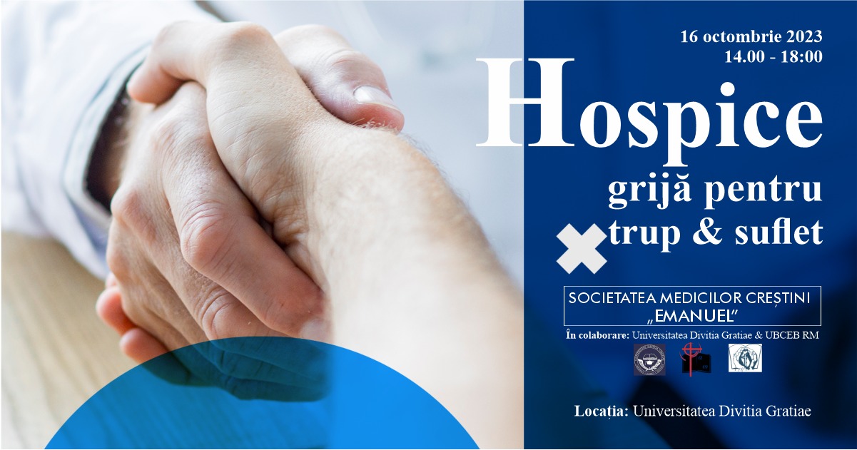 Luni, 16 octombrie 2023, Centru Medical Creștin „Emanuel” invită la Conferința: „Hospice – grijă pentru trup și suflet”. Evenimentul este găzduit de Universitatea „Divitia Gratiae” din Chișinău, Republica Moldova în intervalul orelor 14:00 – 18:00.