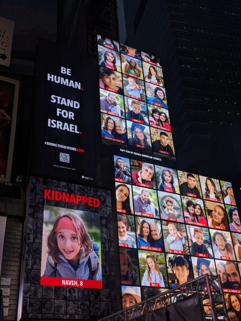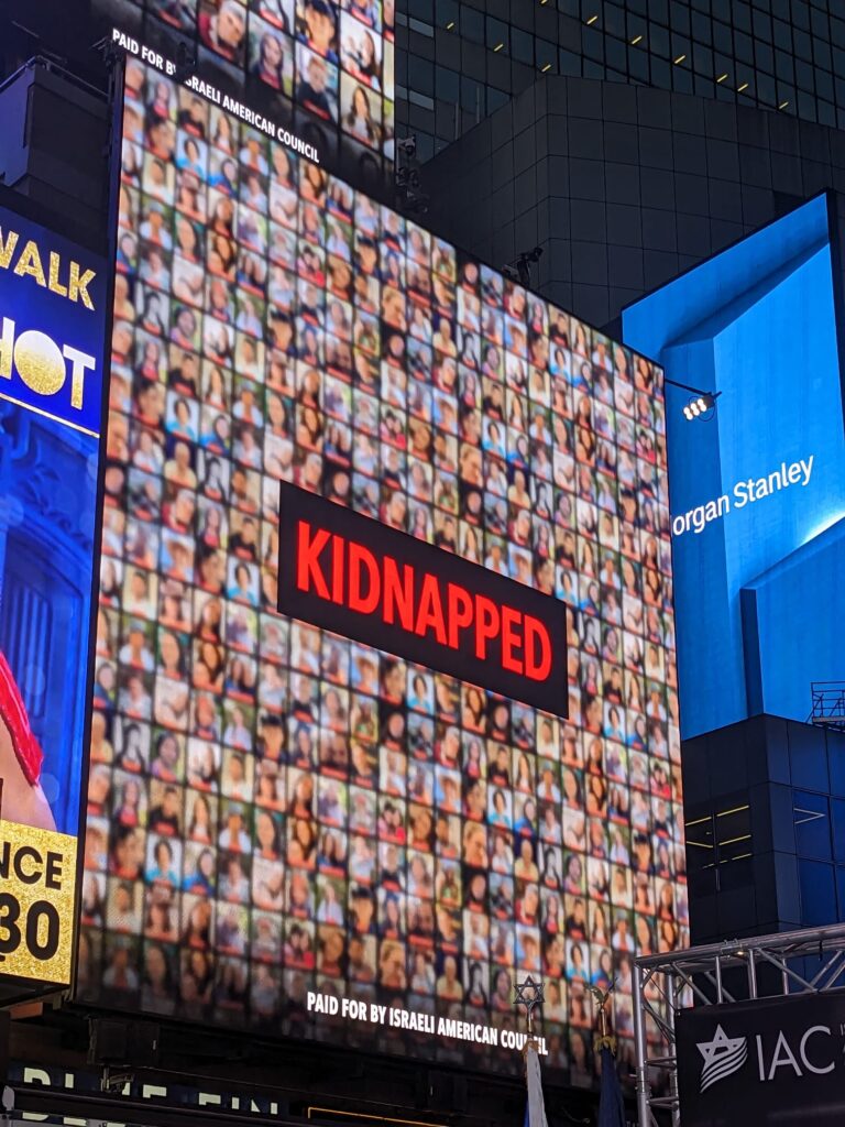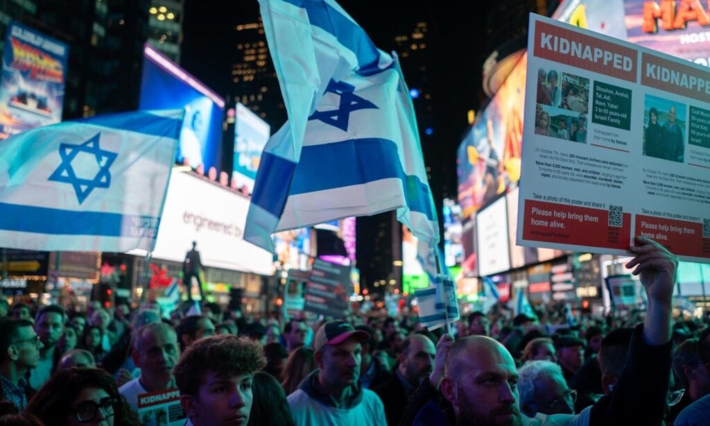 La 14 zile de la atacurile Hamas, cea mai importantă intersecție din New York, Times Square s-a transformat în tribuna pentru manifestul „Bring Them Home Now” – „Aduceți-i acasă acum!”. La mitingul de joi seara, 19 octombrie, fețele celor 200 de ostatici israelieni răpiți de Hamas au fost proiectate pe clădirea impunătoare.