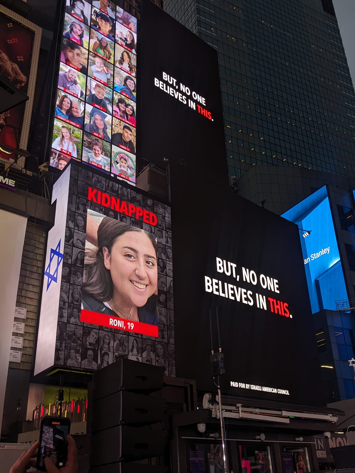 „Misiunea noastră este clară: vom afișa fețele celor luați ostatici de Hamas pe panouri publicitare de pe peste 20 de clădiri care dau în Times Square și alte obiective din orașul New York. În plus, folosind tehnologie avansată cu holograme, vom arăta ostaticii noștri iubiți și familiile lor cerând eliberarea lor imediată din captivitatea Hamas”, se mai punctează în declarația Mișcării de Combatere a Antisemitismului.