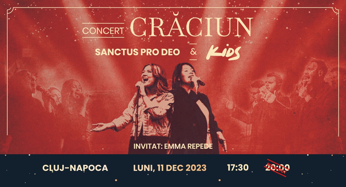 Concertul de Crăciun anunțat de Sanctus Pro Deo pentru 11 decembrie 2023 are sold-out la bilete. Primele 500 de bilete sau vândut în doar 24 de ore. De aceea, vin cu o surpriză și susțin încă un concert cu aceeași dată, în aceeași locație de la ora 17:30. Iar alături de ei vine și Emma Repede. Rezervă ACUM un BILET la Concertul de Crăciun, susținut la Casa de Cultură a Studenților din Cluj Napoca!