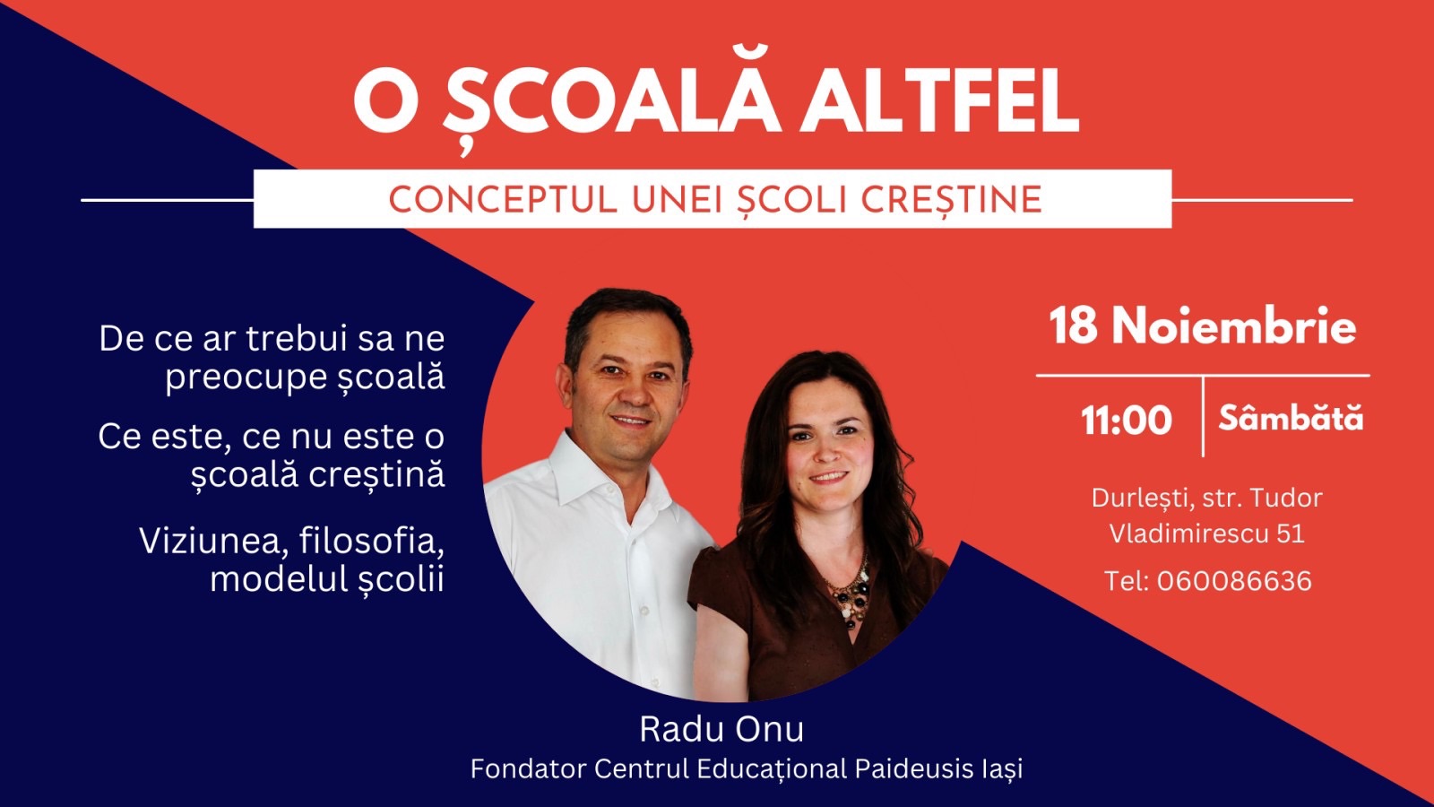 Vom dezbate esența și nuanțele unei școli creștine, clarificând ce este și ce nu este acest model educațional, totul prin prisma unei viziuni și filosofii care pun accent pe dezvoltarea integrală a elevilor.