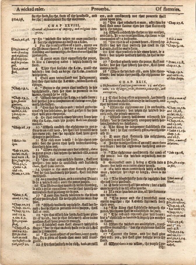 Comisiile au lucrat la Universitățile din Oxford, Cambridge și Westminster. Ediția King James a avut 8500 note marginale, majoritatea referindu-se la semnificația termenilor originali.