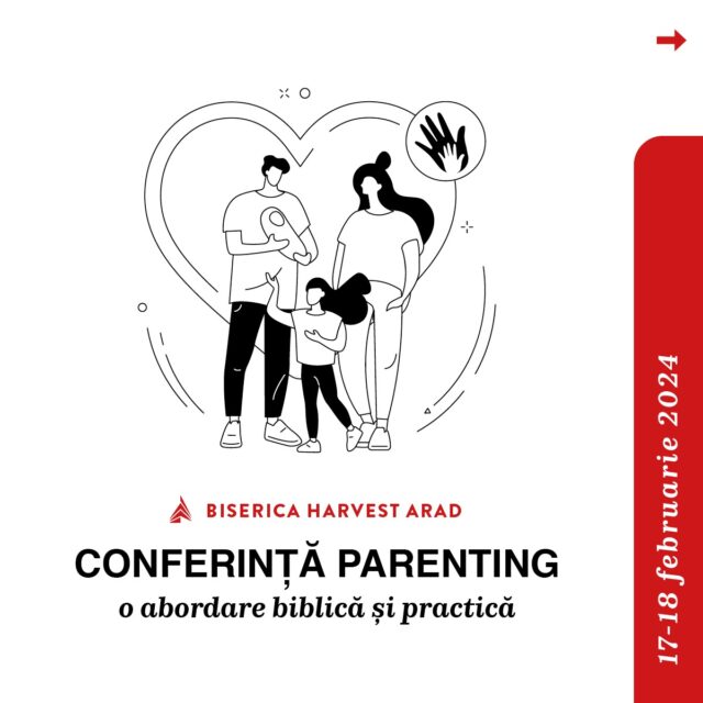 Evenimentul este organizat de Biserica „Harvest” Arad și va avea loc pe 17-18 februarie 2024. Fie că ai copii care poartă încă scutece, copii care se luptă cu temele sau copii care ies la întâlniri, conferința asta este pentru tine. Te va ajuta să faci diferența între scopurile parentale biblice și cele nebiblice, să înțelegi impactul generațional în viața familiei tale, să înveți cum să îţi instruiești copiii în a avea o relație sănătoasă cu tehnologia, ce înseamnă educația sexuală a copiilor tăi, precum și alte câteva teme de mare interes pentru orice părinte.