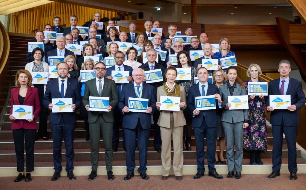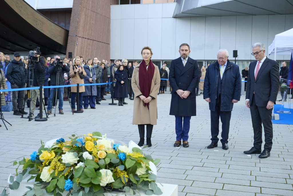 Consiliul Europei a comemorat doi ani de la declanșarea războiului de agresiune al Rusiei împotriva Ucrainei, organizând o ceremonie specială în fața clădirii sediului principal din Strasbourg, Franța. La ceremonie au participat secretarul general Marija Pejčinović Burić, președintele Adunării Parlamentare, Theodoros Rousopoulos, reprezentantul permanent al Liechtensteinului, ambasadorul Domenik Wanger (în numele Președinției Comitetului Miniștrilor) și ambasadorul Borys Tarasyuk, reprezentantul permanent al Ucrainei la Consiliul Europei, anunță Coe.int