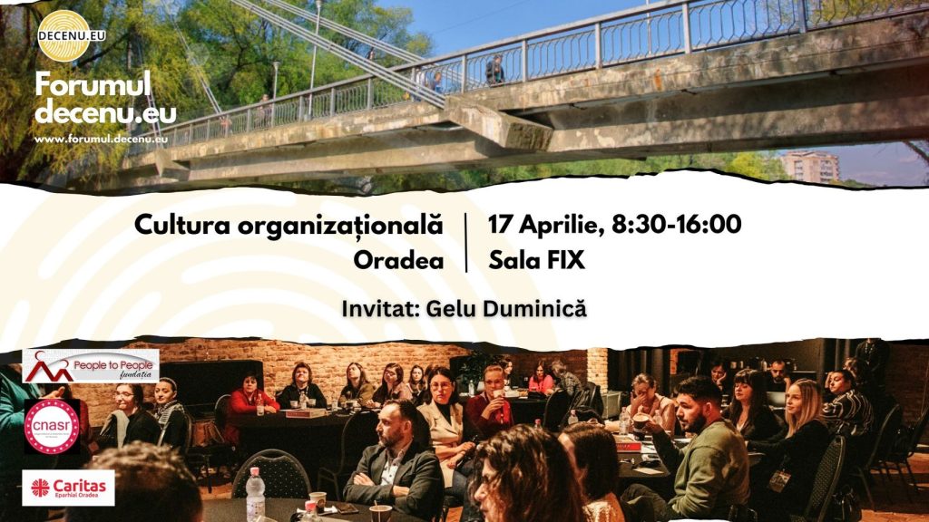 Sesiunea de lucru se desfășoară în cadrul Forumului Decenu.eu 2024, în parteneriat cu People2People Foundation. Evenimentul va fi găzduit miercuri, 17 aprilie, între orele 08:30-16:00 la FIX Makerspace, Neptun Cafe, de pe Bulevardul Dacia, Oradea. Pentru alte detalii și bilete accesați Librăria Decenu.eu