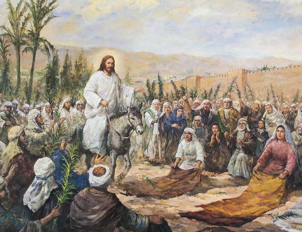 Intrarea în Ierusalim, este un eveniment care aruncă o rază de lumină pe întreaga narațiune din această Săptămână a Patimilor. Bucuria celor care L-au întâmpinat pe Isus, este ilustrată în popor prin utilizarea masivă a florilor, ceea ce creează o atmosferă de sărbătoare. La aceasta se adaugă verdele crud și atunci când este cazul, lumina zilei de primăvară.