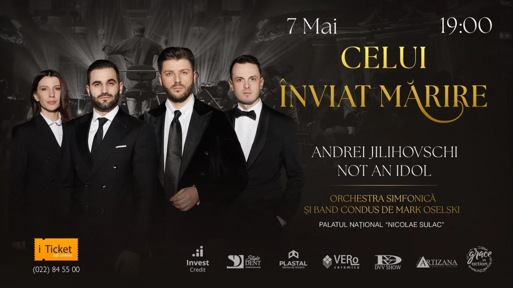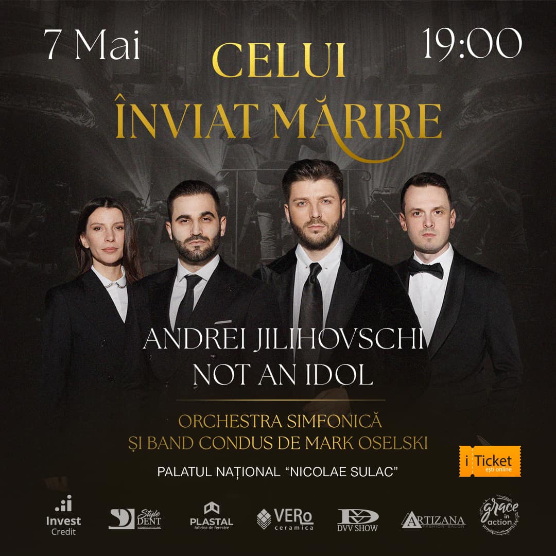 Marți, 7 mai 2024, trupa Not an Idol și Andrei Jilihovschi, acompaniați de orchestra simfonică vă invită la un concert grandios de Paști. Evenimentul are genericul „Celui Înviat Mărire” și va fi găzduit de Palatul Național „Nicolae Sulac” începând cu ora 19:00.