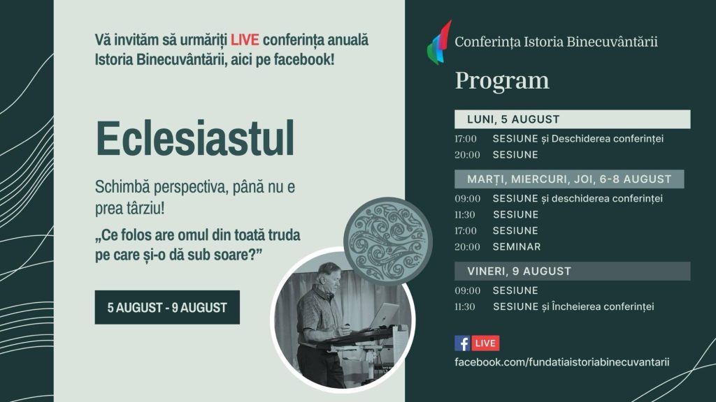 Puteți urmări sesiunile LIVE și înregistrările sesiunilor pe pagina de Facebook Istoria Binecuvântării, începând de luni, 5 august, ora 17:00.