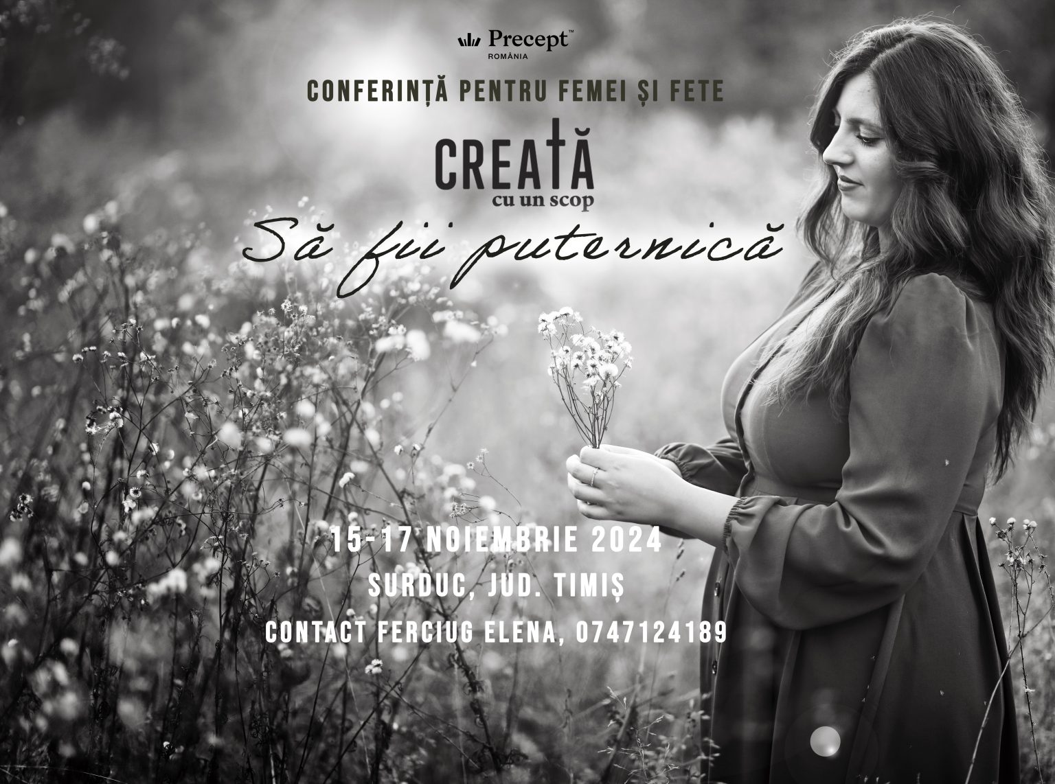 Cât de repede a trecut timpul și deschidem din nou înscrierile pentru Conferința Națională anuală pentru femei și fete a proiectului „Creată cu un scop”, ce va avea loc în perioada 15-17 noiembrie la Surduc, Județul Timiș!
