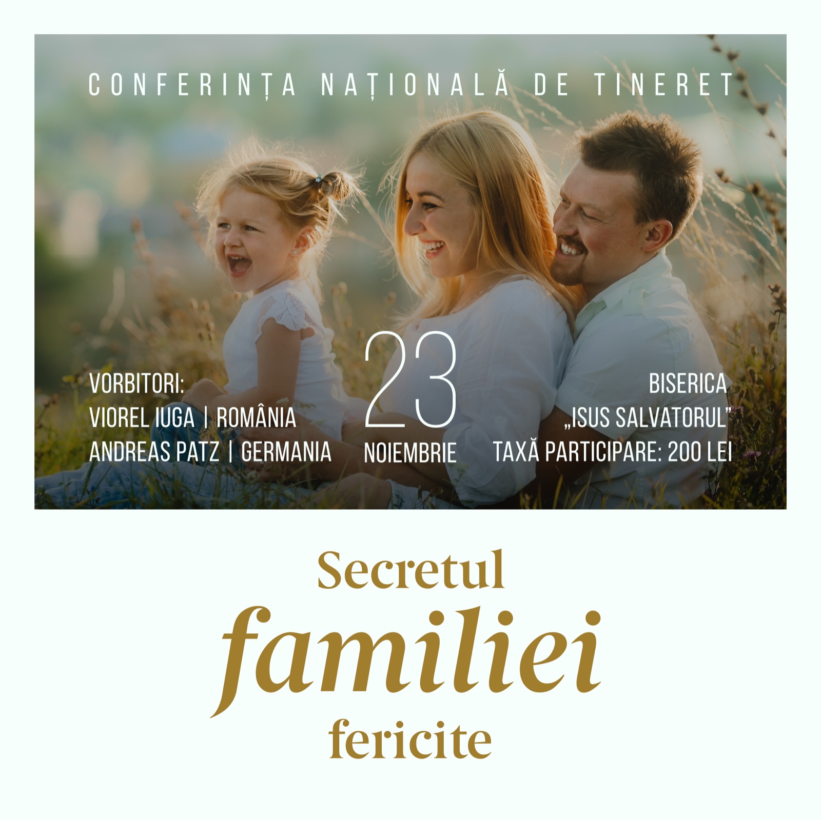 Sâmbătă, 23 noiembrie 2024, departamentul de tineret al Uniunea Bisericilor Creștine Evanghelice Baptiste (UBCEB) din Moldova organizează Conferința Naționaltă cu tema: „Secretul familiei fericite”.