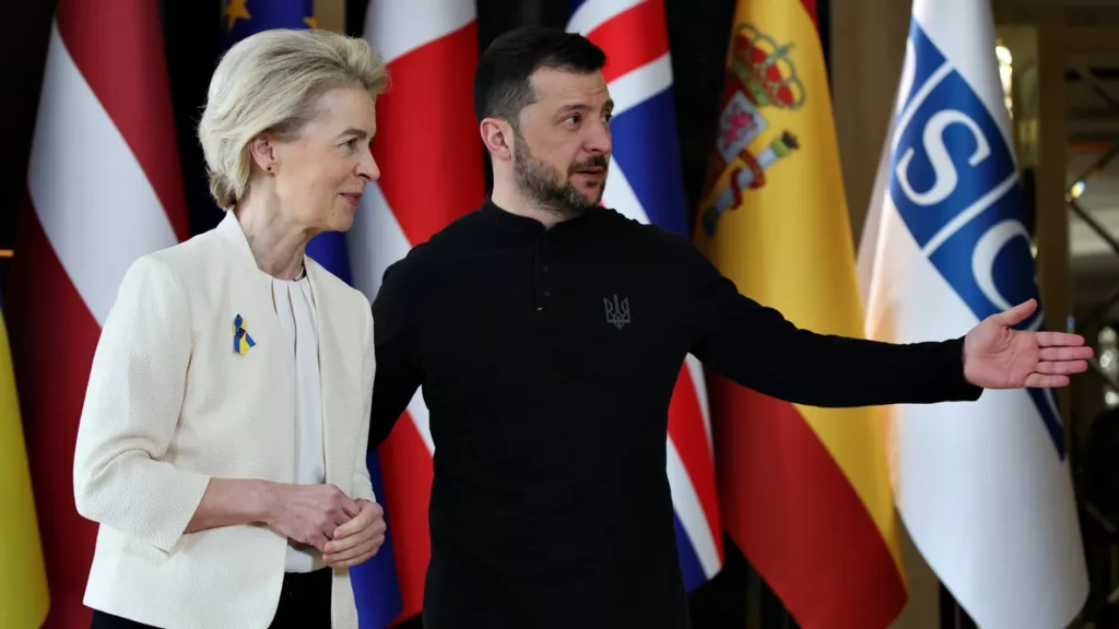 La 24 februarie 2025, liderii Uniunii Europene, inclusiv președinta Comisiei Europene, Ursula von der Leyen, și președintele Consiliului European, Antonio Costa, au sosit la Kiev pentru a-și exprima solidaritatea cu Ucraina. Von der Leyen a subliniat necesitatea accelerării livrării de arme și muniții către Ucraina și a anunțat planuri pentru integrarea piețelor energetice ale Ucrainei și Republicii Moldova în rețeaua electrică a UE până la sfârșitul anului viitor.