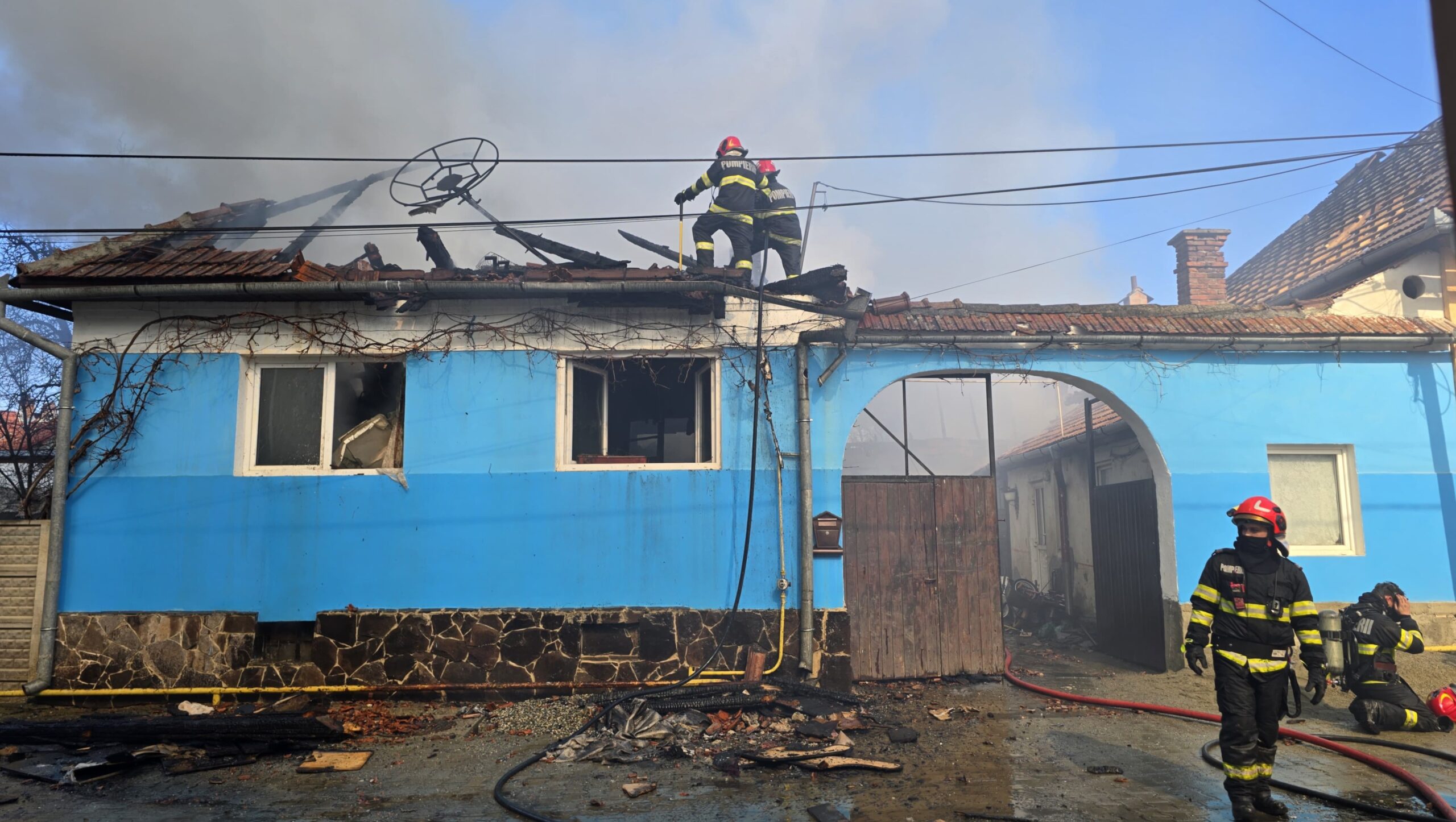 O familie din Racovița, județul Sibiu, trece printr-o încercare grea după ce un incendiu puternic le-a mistuit locuința. Flăcările au distrus aproape în totalitate acoperișul, tavanul și majoritatea bunurilor din casă. Mai mult decât atât, focul a afectat și șura vecinilor, iar o parte din casa acestora a fost grav avariată.