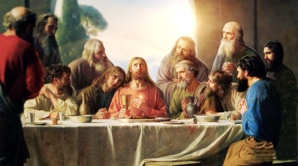 „Când a sosit ceasul, Isus a șezut la masă cu cei doisprezece apostoli. El le-a zis: ‘Am dorit mult să mănânc paștele acestea cu voi înainte de patima Mea; căci vă spun că, de acum încolo, nu le voi mai mânca până la împlinirea lor în Împărăția lui Dumnezeu.’
