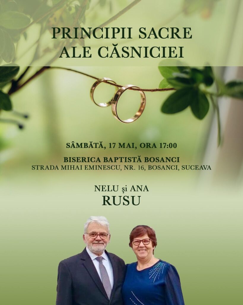 ???? Biserica Baptistă din Bosanci vă invită la o întâlnire specială pentru familii, împreună cu Nelu și Ana Rusu din Turda! ????