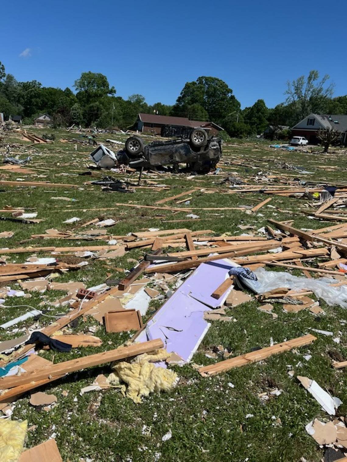 În cele din urmă, familia a ieșit la suprafață în sunetul sirenelor și al vecinilor panicați. În timp ce propria casă a familiei a fost cruțată, altele din spatele ei au fost complet răvășite, a spus Patterson, în timp ce sunetul sculelor electrice bâzâia în fundal. Cartierul a fost împânzit cu grămezi de cherestea, tablă, izolație și obiecte rătăcite – o valiză, o canapea, diverse obiecte din casele oamenilor care au zburat peste tot.