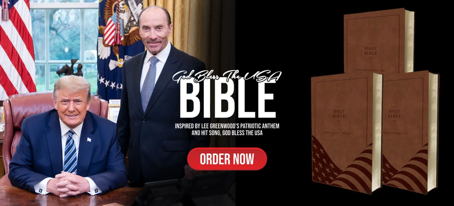 Biblia, care are o tematică patriotică și este comercializată la prețuri de până la 99,99 dolari, conține versiunea King James a textului biblic, alături de documente fondatoare ale Statelor Unite și versurile imnului patriotic semnat de Lee Greenwood.
