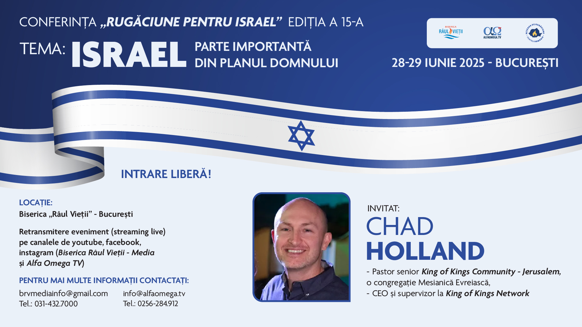 Invitatul special al conferinței este pastorul Chad Holland, lider senior al bisericii King of Kings Community din Ierusalim și CEO al rețelei King of Kings Network. Acesta va susține mesaje inspiraționale și va împărtăși perspective valoroase din inima Israelului.