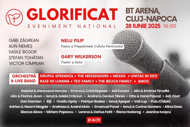Evenimentul „Glorificat – Împreună pentru Gloria Lui” promite să fie un moment de referință pentru comunitatea creștină din România. Cu începere de la ora 16:00, publicul este invitat să participe la un concert colectiv al închinării, îmbinat cu mesaje motivaționale și evanghelistice susținute de lideri spirituali respectați. „Ne dorim să venim împreună pentru un timp de revigorare spirituală și întoarcere la Dumnezeu”, spun organizatorii.