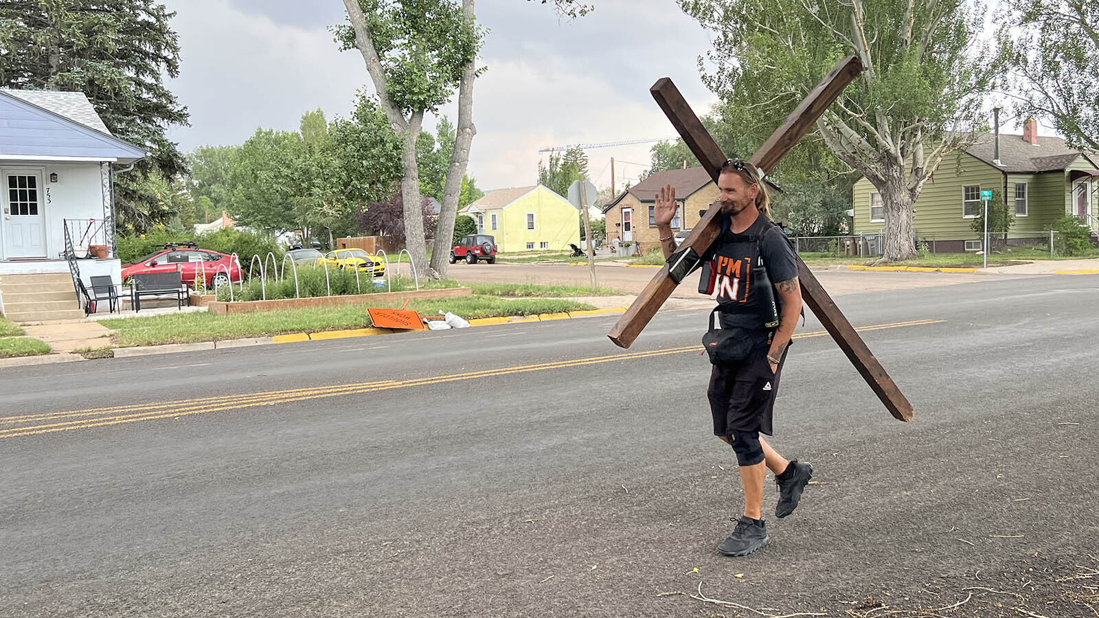 Schindler a construit mai întâi crucea, apoi a plecat cu ea pe umăr în Bend, Oregon, pe 23 iunie 2023.