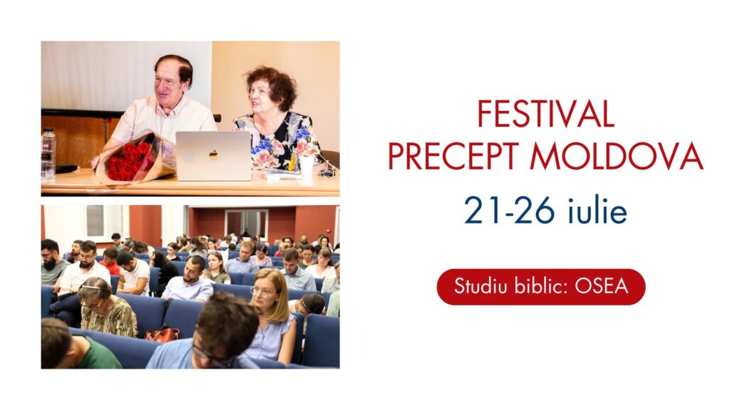Festivalul Precept Ministries Moldova revine în această vară cu o nouă ediție, desfășurată în perioada 21–26 iulie 2025, la Chișinău. Participanții sunt invitați să se alăture unei săptămâni intense de studiu biblic inductiv, sub îndrumarea cunoscuților învățători Mia și Costel Oglice, care vor conduce sesiuni profunde de analiză a cărții Osea.