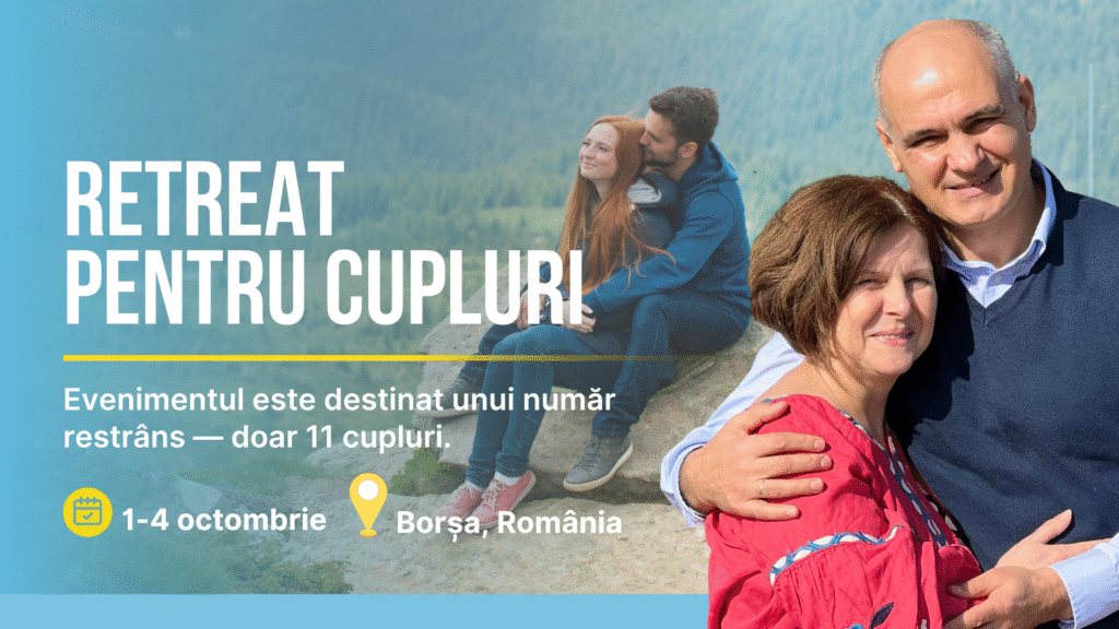 Patru zile de reconectare, vindecare și întărire a relației în lumina Scripturii. Între 1 și 4 octombrie 2025, în inima naturii din Borșa, România, va avea loc un retreat dedicat exclusiv cuplurilor căsătorite – un timp de liniște, regăsire și restaurare pentru cei care își doresc mai mult decât supraviețuire în căsnicie: împlinire, armonie și dragoste adevărată.