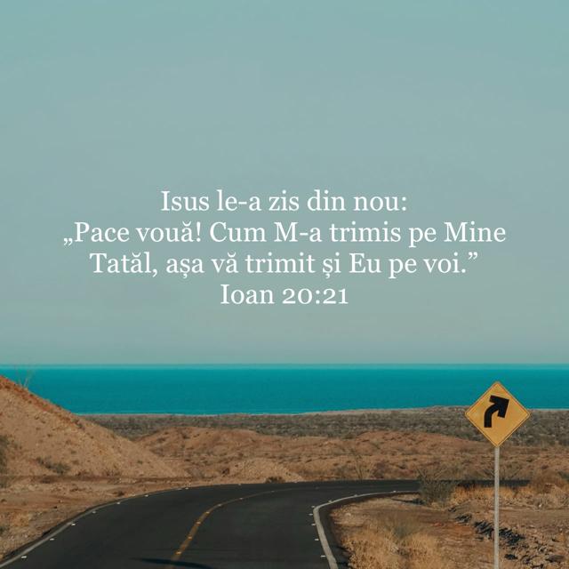 El le spune apoi ucenicilor că îi trimite în lume. Aceasta înseamnă că vor trebui să părăsească siguranța camerei încuiate. Dar, deși viitorul lor este nesigur, ei sunt cunoscuți de Cel care deține viitorul. Așadar, oriunde ar merge și orice ar întâlni, cuvintele lui Isus vor rămâne adevărate: pacea va fi cu ei.