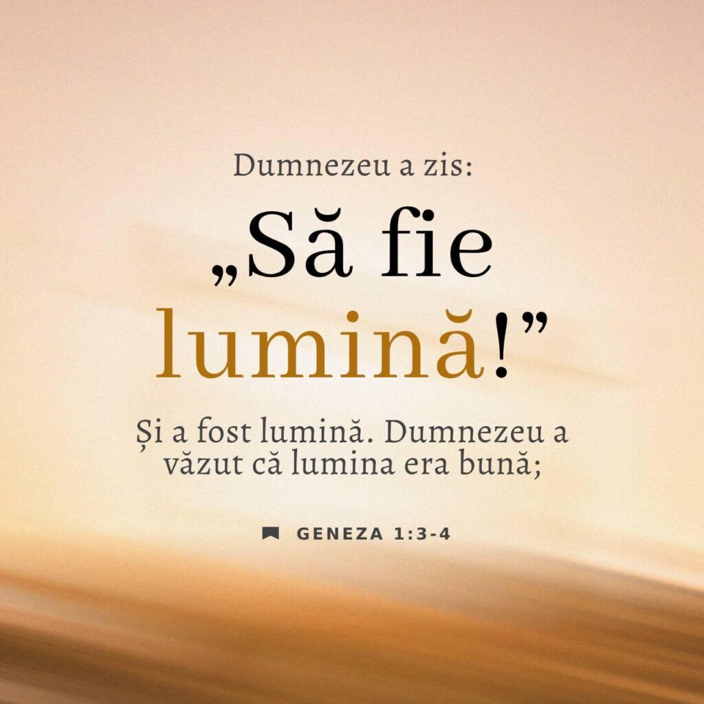 „Atunci Dumnezeu a zis: «Să fie lumină!». Și a fost lumină. Dumnezeu a văzut că lumina era bună și a separat lumina de întuneric.” Geneza 1:3-4 NTR