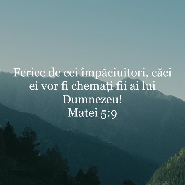 „Ferice de cei împăciuitori, pentru că ei vor fi numiți fii ai lui Dumnezeu.” (Biblia Traducerea Dumitru Cornilescu Revizuită (2022)