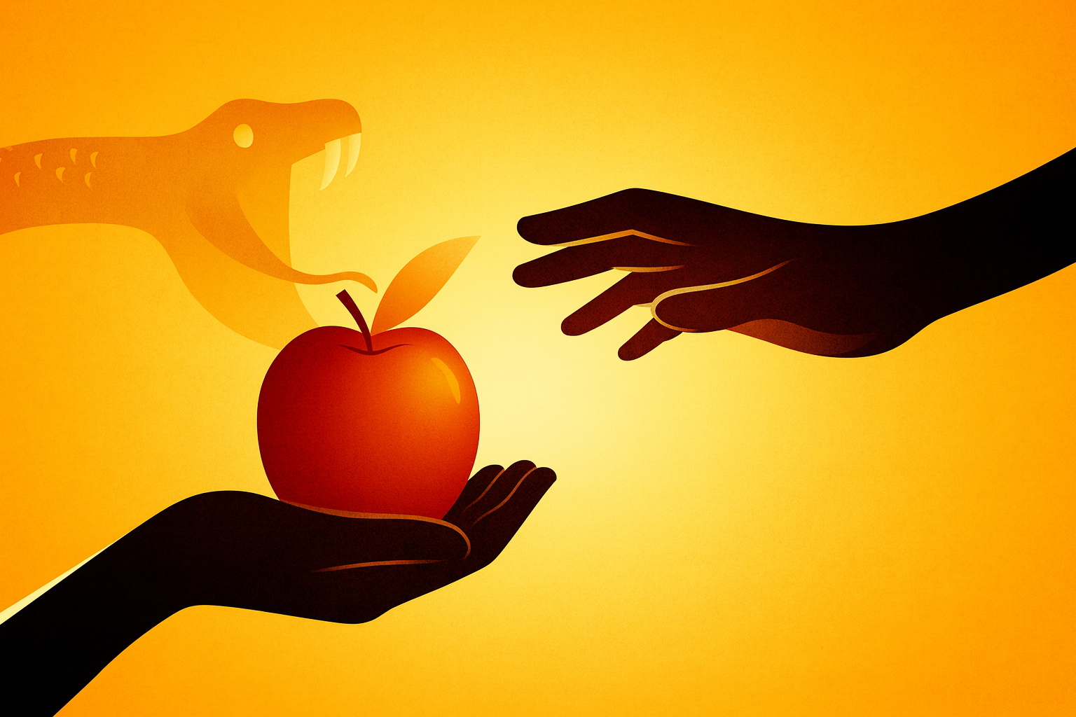 Ilustrez acest fapt prin actul ispitirii Evei din grădina Edenului. Deghizându-se în șarpe, sau folosind șarpele, diavolul a ademenit-o pe Eva, strecurând îndoială, trezind pofte și dorințe în fața cărora ea nu a mai putut rezista și făcând promisiuni mărețe: „veți fi ca Dumnezeu!”.