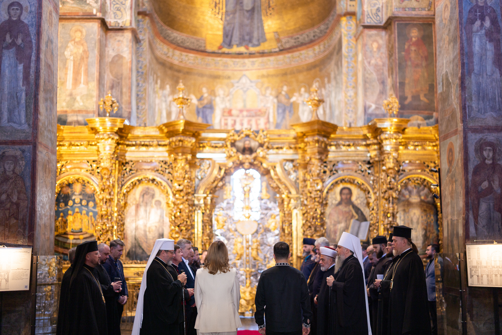 Sub cupola milenară a catedralei, președintele Volodymyr Zelenski și soția sa, Olena, s-au alăturat slujbei ecumenice, ascultând rugăciunile înălțate de reprezentanți ai diferitelor confesiuni creștine, dar și ai comunităților evreiești și musulmane. Atmosfera a fost una de solemnitate și speranță, în care glasurile unite au cerut încetarea războiului, protecția apărătorilor țării și un viitor pașnic pentru Ucraina.