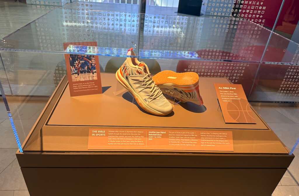 Veteranul NBA Jonathan Isaac, jucător la Orlando Magic, a inaugurat săptămâna aceasta în Muzeul Bibliei din Washington o nouă vitrină care evidențiază modul în care Cuvântul lui Dumnezeu a influențat arta, educația, arhitectura și alte aspecte ale vieții sociale. În cadrul evenimentului, sportivul în vârstă de 27 de ani a prezentat o pereche de adidași Judah 1, marca UNITUS, semnați și purtați de el în meciurile din NBA – prima încălțăminte sport din ligă care integrează vizibil un verset biblic în designul său, relatează Christian Post.