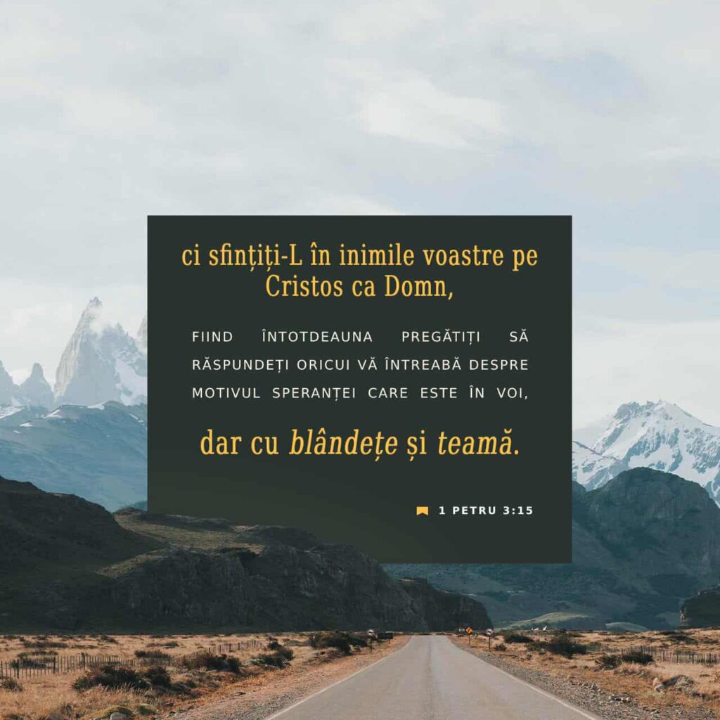 „Sfințiți-L în inimile voastre pe Cristos ca Domn, fiind întotdeauna pregătiți să răspundeți oricui vă întreabă despre motivul speranței care este în voi.” 1 Petru 3:15