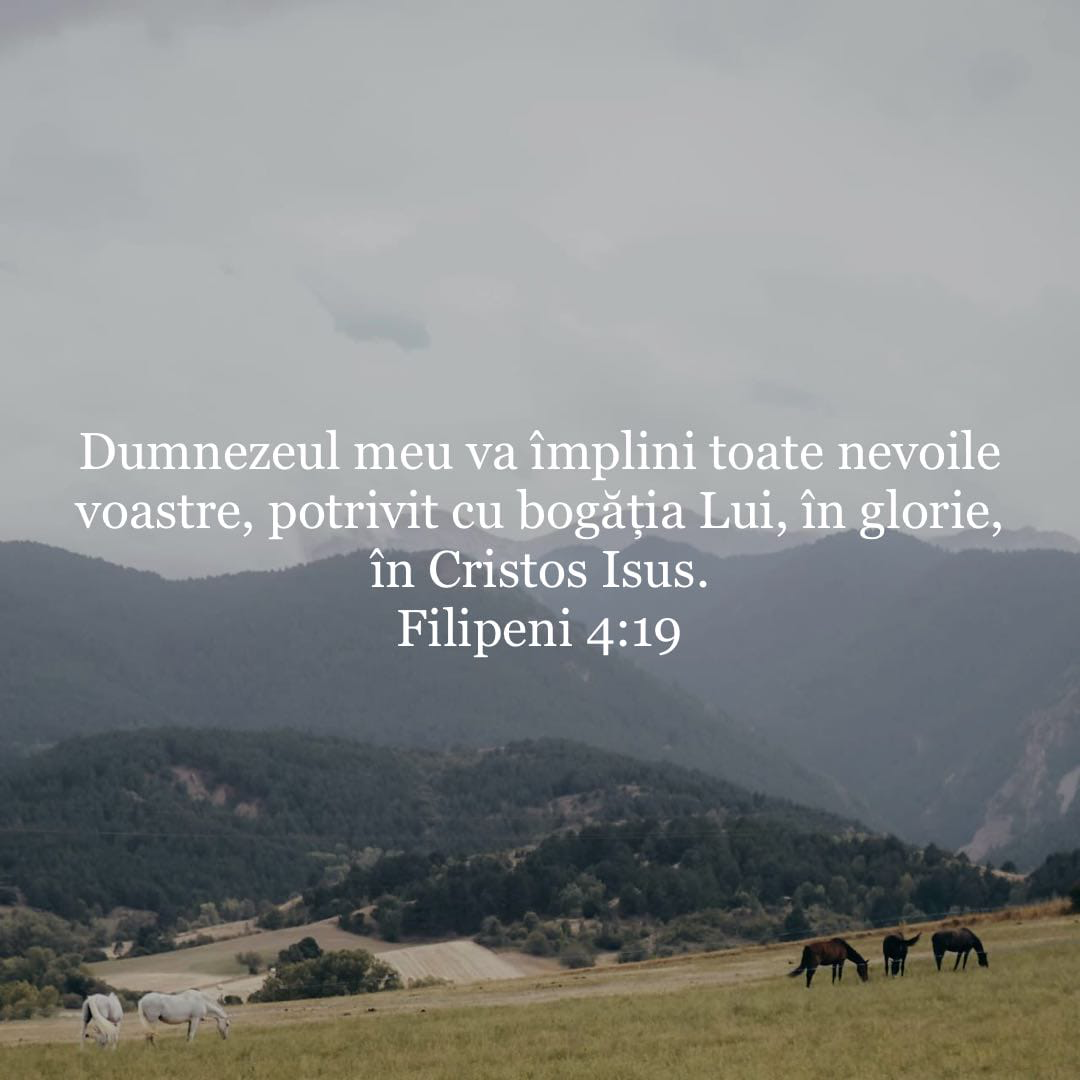 „Dumnezeul meu va împlini toate nevoile voastre, potrivit cu bogăția Lui, în glorie, în Cristos Isus.” Filipeni 4:19 NTR