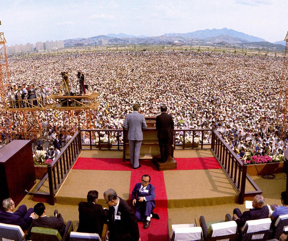 Cruciadele organizate de Graham au fost momente memorabile: oameni veniți din sate și orașe, sute de mii la un concert spiritual, iar uneori milioane adunate în jurul unui singur apel. Reuniunea din Seul, 1973, rămâne un reper — milioane de oameni prezenți în acea perioadă, mii de răspunsuri personale la mesaj. Aceste imagini au marcat memoria colectivă a secolului XX: de la cortul modest la stadionul imens — o transformare a formatului și a anvergurii evanghelizării.