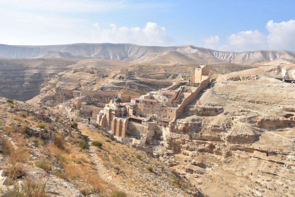 Muntele Ispitirii, locul unde tradiția spune că Domnul Isus a postit 40 de zile și a fost ispitit de diavol (Matei 4:1–11). Mănăstirea ridicată pe versantul muntelui păstrează vie amintirea acestui episod.