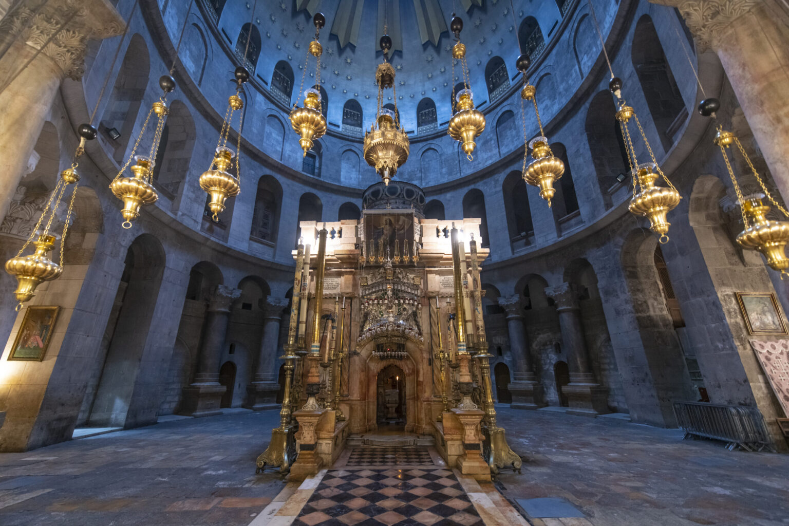 - Edicula Sfântului Mormânt, capela construită peste mormântul gol. Aici, în fiecare an de Paște, credincioșii ortodocși trăiesc miracolul „Luminii Sfinte”.