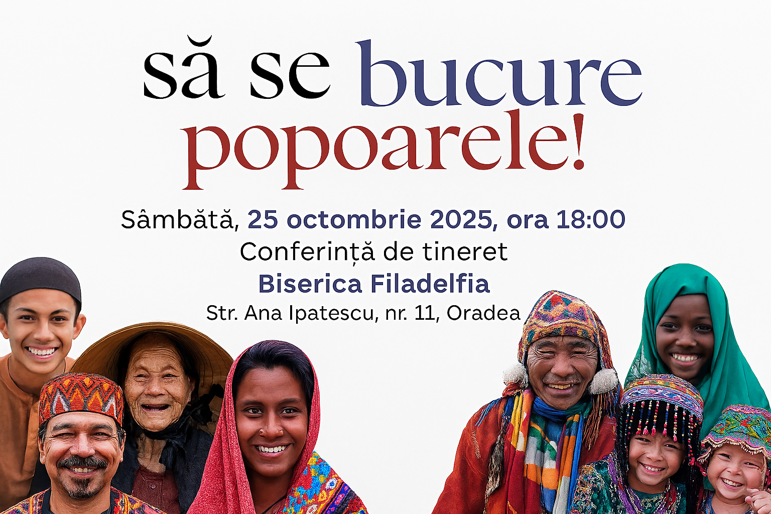 Într-o lume tot mai grăbită, tot mai confuză în valori și sens, o generație de tineri se ridică pentru a duce mai departe lumina și speranța Evangheliei. Cu acest gând, Agenția Penticostală de Misiune Externă (APME), în parteneriat cu Departamentul de Tineret al Comunității Regionale Oradea, organizează o seară specială sub genericul „Să se bucure popoarele!”, un eveniment dedicat misiunii și bucuriei care se răspândește până la marginile pământului.