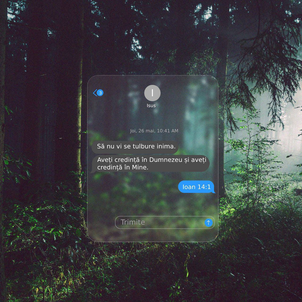 „Să nu vi se tulbure inima. Aveți credință în Dumnezeu și aveți credință în Mine”. Ioan 14:1 VDC