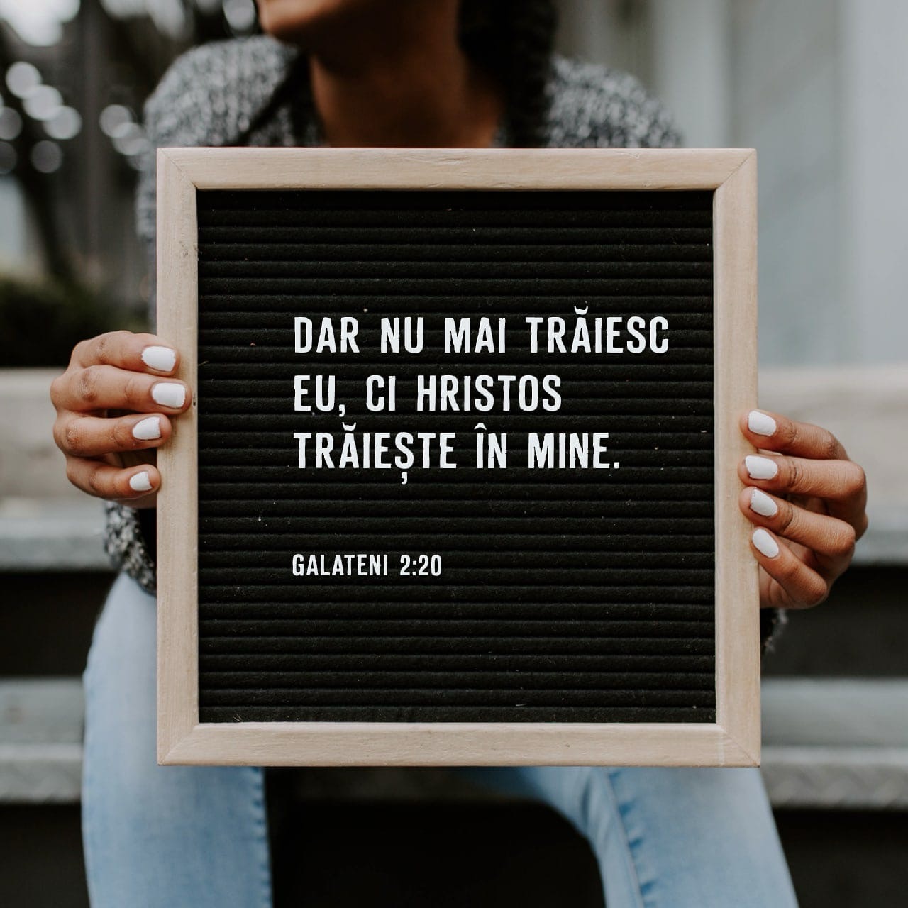 „Am fost răstignit împreună cu Cristos și nu mai trăiesc eu, ci Cristos trăiește în mine, iar viața pe care o trăiesc acum în trup o trăiesc prin credința în Fiul lui Dumnezeu, Care m-a iubit și S-a dat pe Sine Însuși pentru mine.”
