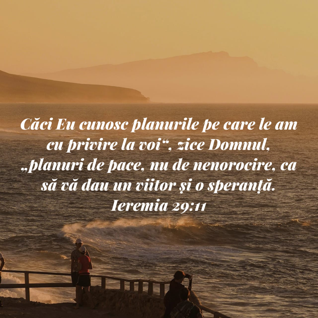 „«Căci Eu cunosc planurile pe care le am cu privire la voi», zice Domnul, «planuri de pace, nu de nenorocire, ca să vă dau un viitor și o speranță.»”