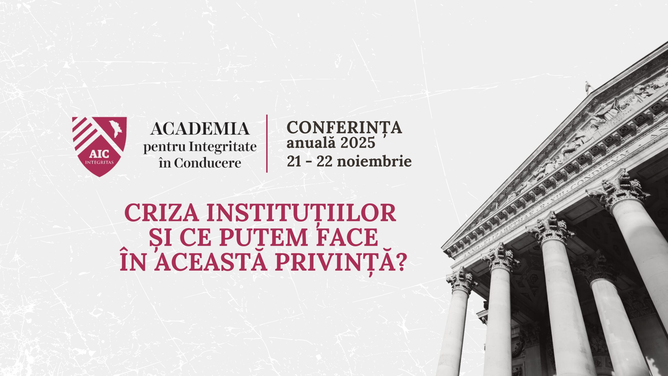 Republica Moldova traversează o perioadă de fragilitate instituțională, în care încrederea publică atinge unele dintre cele mai scăzute cote din ultimii ani. Doar câteva instituții naționale mai beneficiază de o percepție pozitivă, în timp ce majoritatea se confruntă cu o criză profundă de legitimitate. Pentru a analiza cauzele acestei erodări și a identifica soluții concrete, Academia pentru Integritate în Conducere (AIC) organizează Conferința Anuală de Toamnă 2025, cu tema „Criza instituțiilor și ce putem face în această privință”?