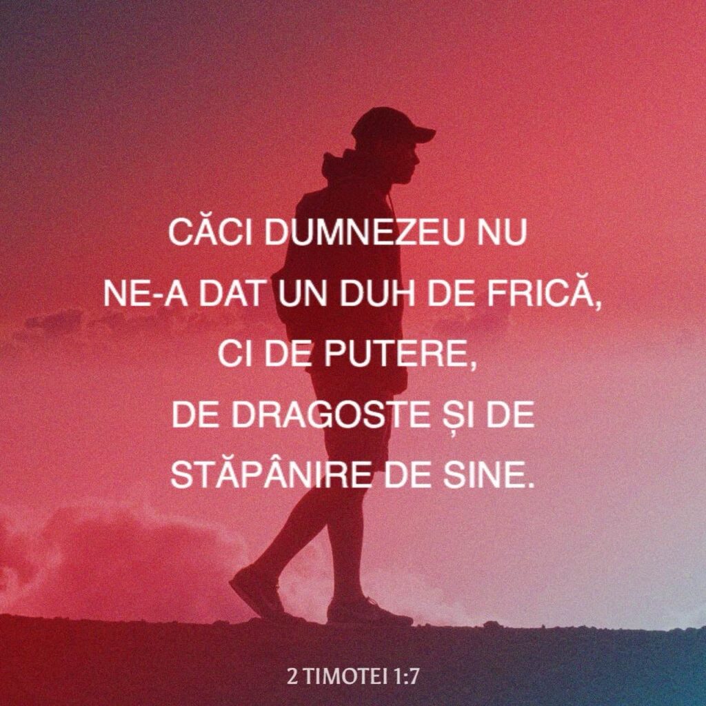 Așadar, fă-ți timp astăzi să vorbești cu Dumnezeu. Cere-I să te împuternicească prin Duhul Său spre încredere, dragoste și autodisciplină. Gândește-te la modul în care Dumnezeu te conduce să îți schimbi modul de viață. În timp ce faci asta, amintește-ți că Dumnezeu nu ne dă frică. El ne umple de iubire pentru că vrea să experimentăm o relație de încredere cu El.