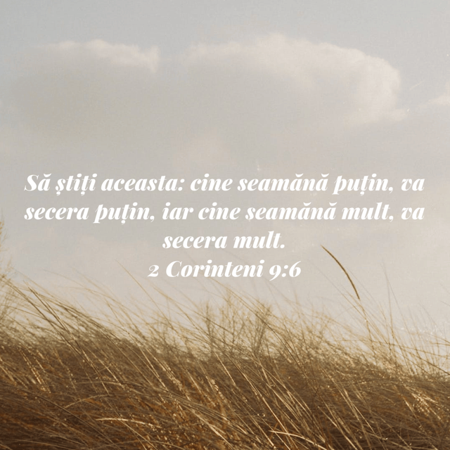 „Să ştiţi: cine seamănă puţin, puţin va secera, iar cine seamănă mult, mult va secera.” 2 Corinteni 9:6