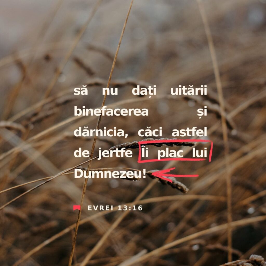 Evrei 13:16 ne dezvăluie un alt mod prin care Îl putem mulțumi pe Dumnezeu: iubindu-i pe alții. Atunci când îi iubim pe cei din jurul nostru, reflectăm dragostea pe care Dumnezeu o are pentru ei. De aceea este important modul în care ne purtăm cu oamenii.