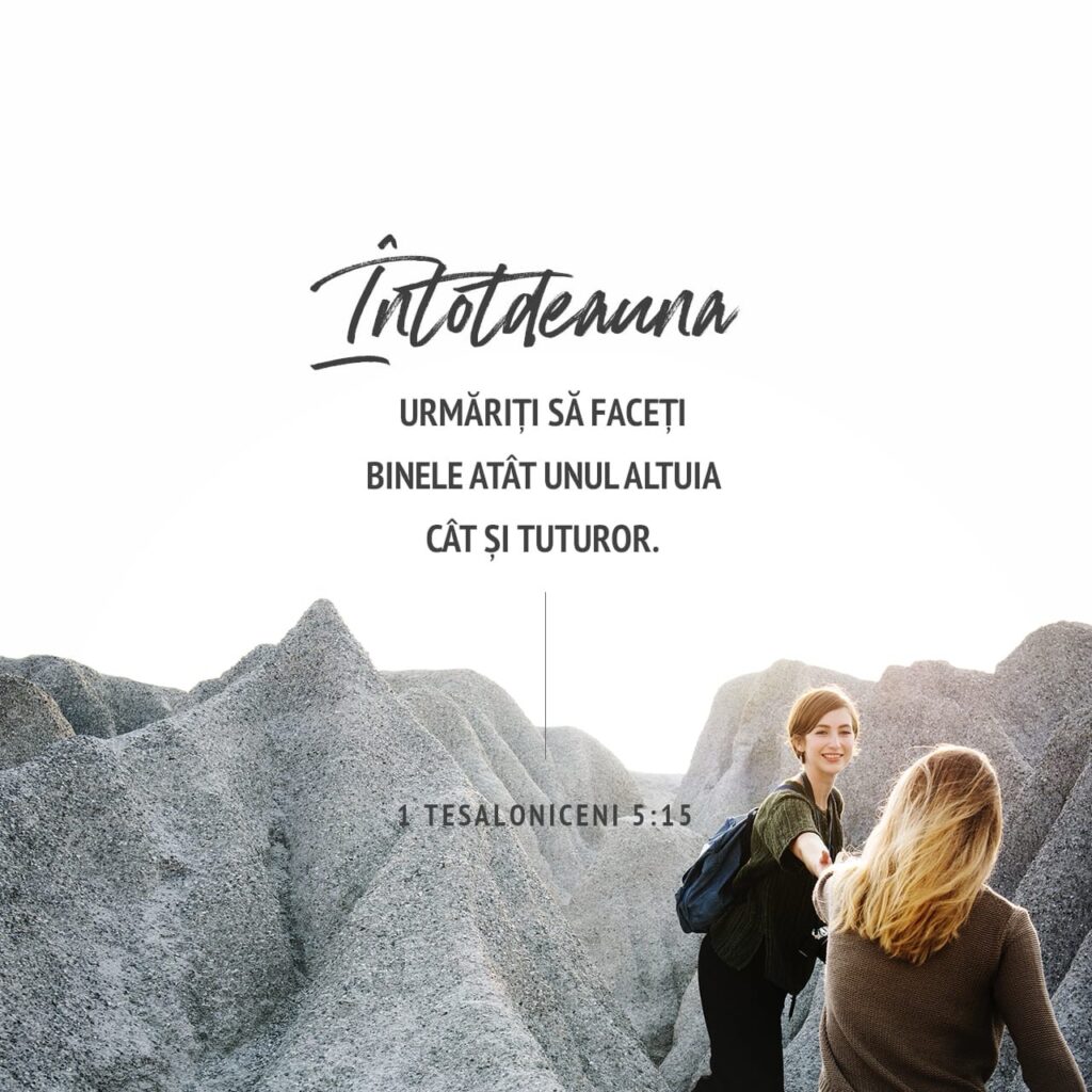 „Aveți grijă ca nimeni să nu răsplătească cu rău pentru rău, ci urmăriți întotdeauna să faceți binele, atât unul altuia, cât și tuturor.” 1 Tesaloniceni 5:15