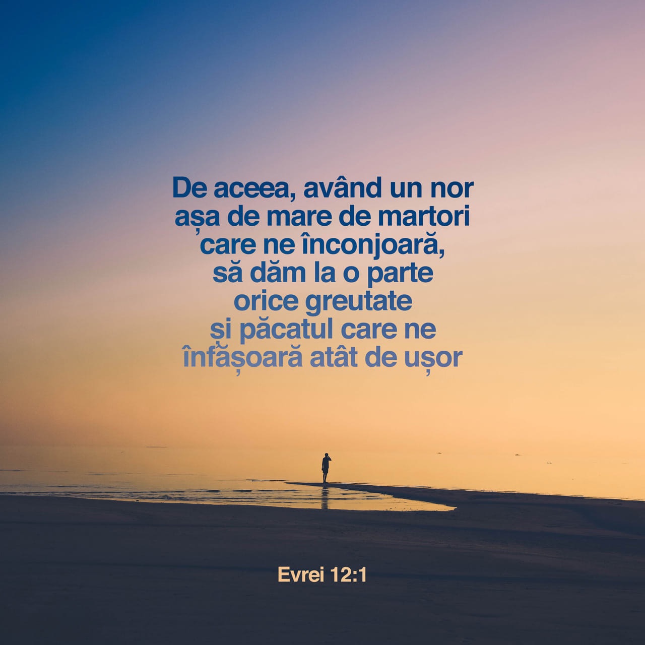 „De aceea, având un nor așa de mare de martori care ne înconjoară, să dăm la o parte orice greutate și păcatul care ne înfășoară atât de ușor și să alergăm cu răbdare cursa care ne stă înainte”.