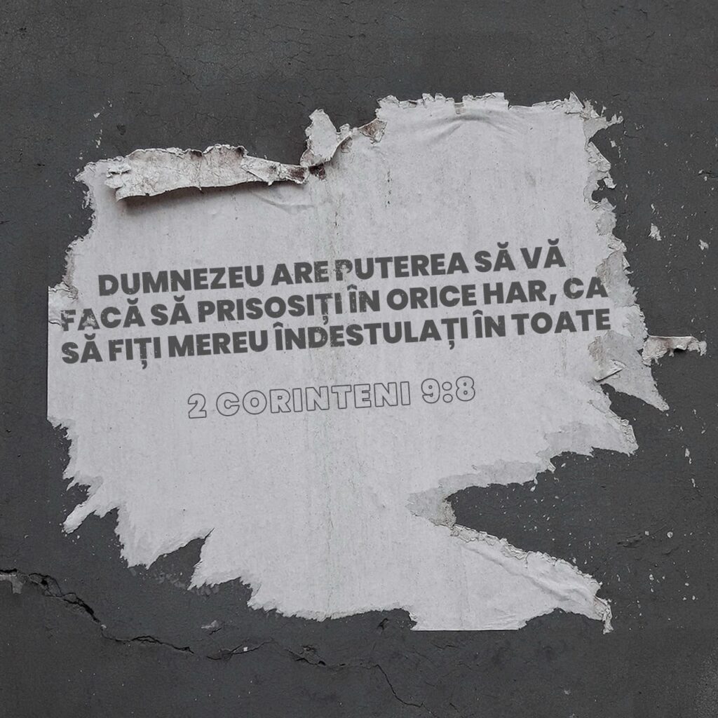 2 Corinteni 9:8 spune că Dumnezeu poate să-i binecuvânteze din belșug pe cei care sunt generoși în a-și folosi timpul și resursele pentru a face lucruri bune pentru alții.