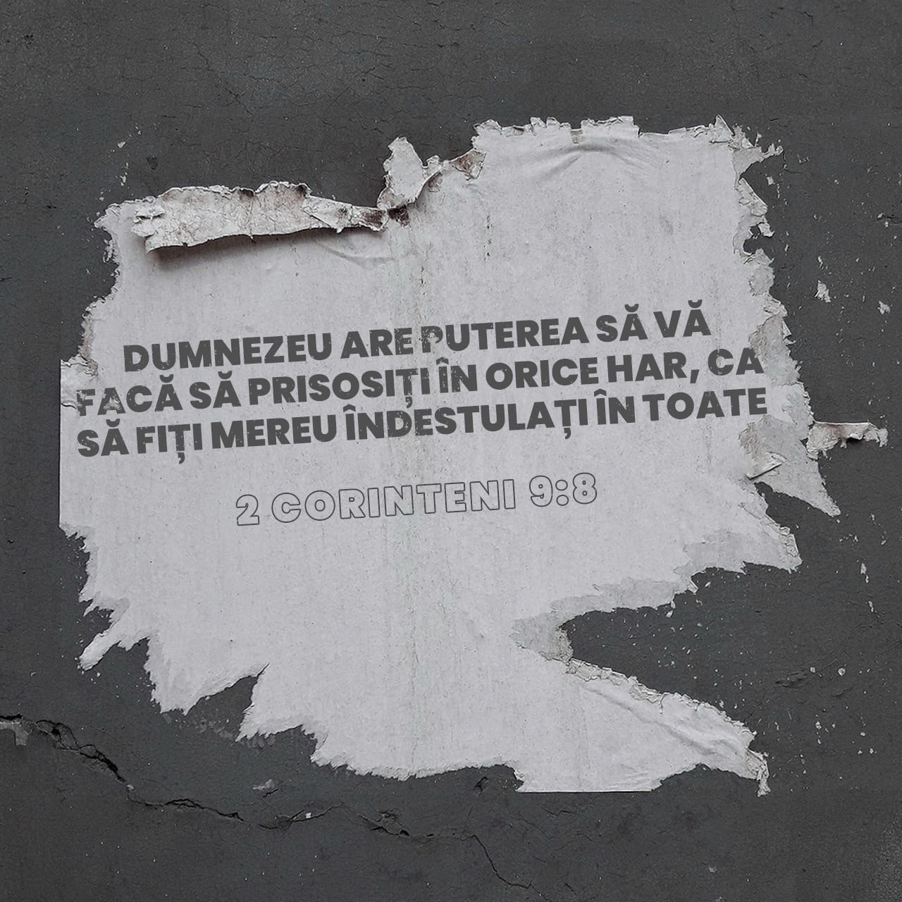 Acest verset nu spune că Dumnezeu ne va binecuvânta necondiționat. Cele două versete dinaintea acestuia, din 2 Corinteni 9:6-7, vorbesc despre cum ar trebui să fim darnici și bucuroși în tot ceea ce facem.